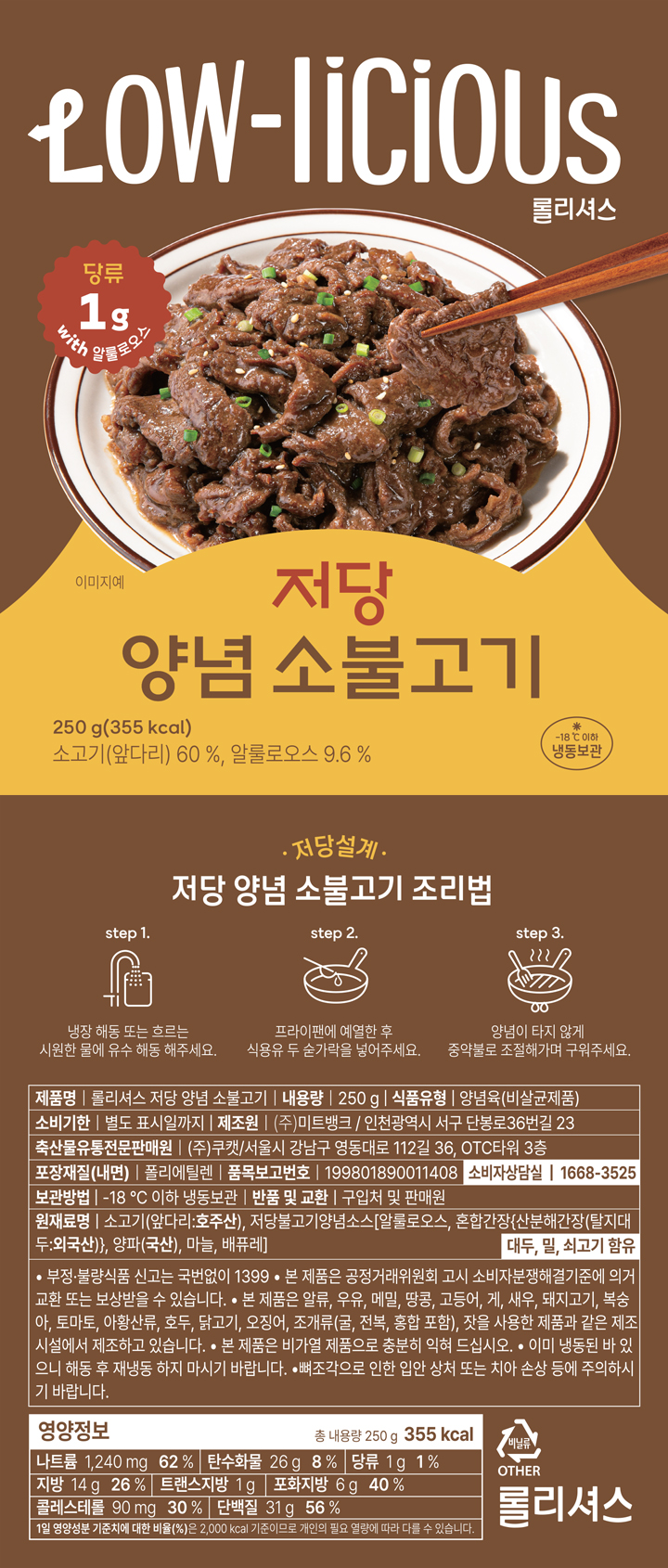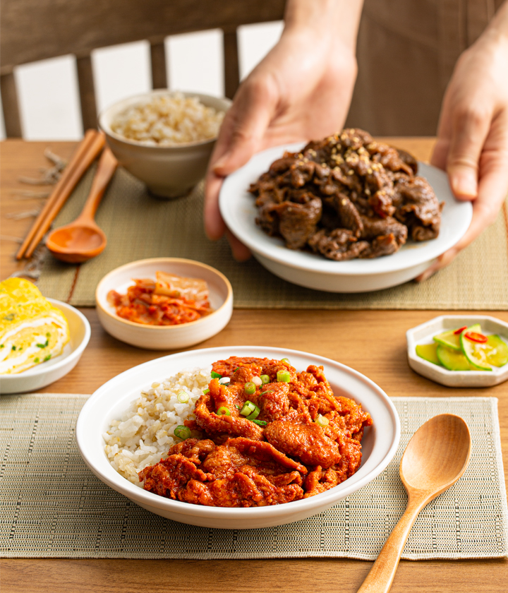 [3+1]롤리셔스 저당 한끼 반찬 2종 (양념 소불고기/매콤 제육볶음)