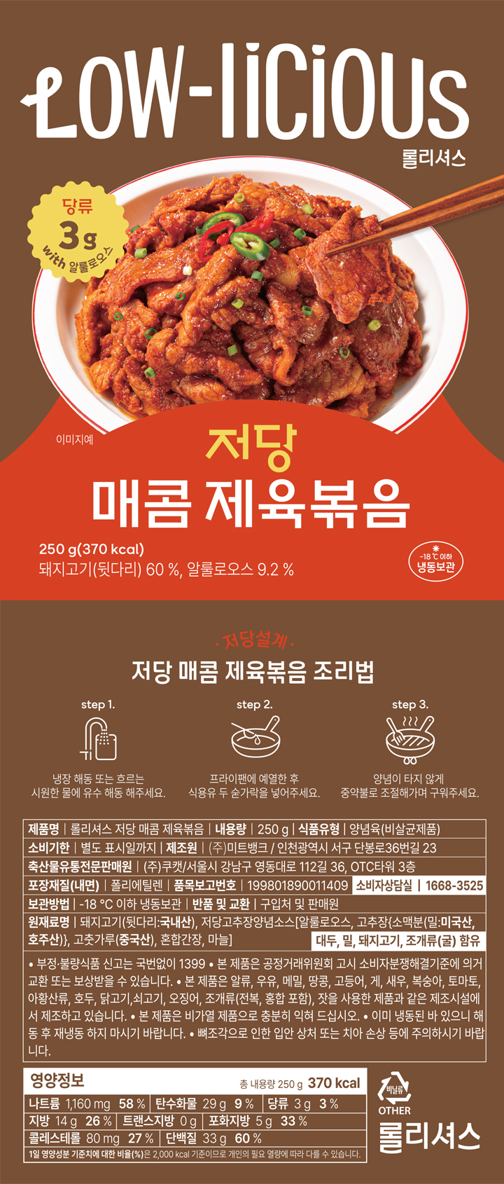 롤리셔스 저당 매콤 제육볶음 250gX2개