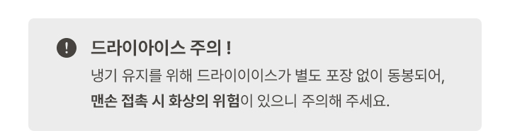 ⚠️ 드라이아이스를 맨손으로 만질 경우 화상을 입을 수 있으니 절대 직접 만지지 마세요.