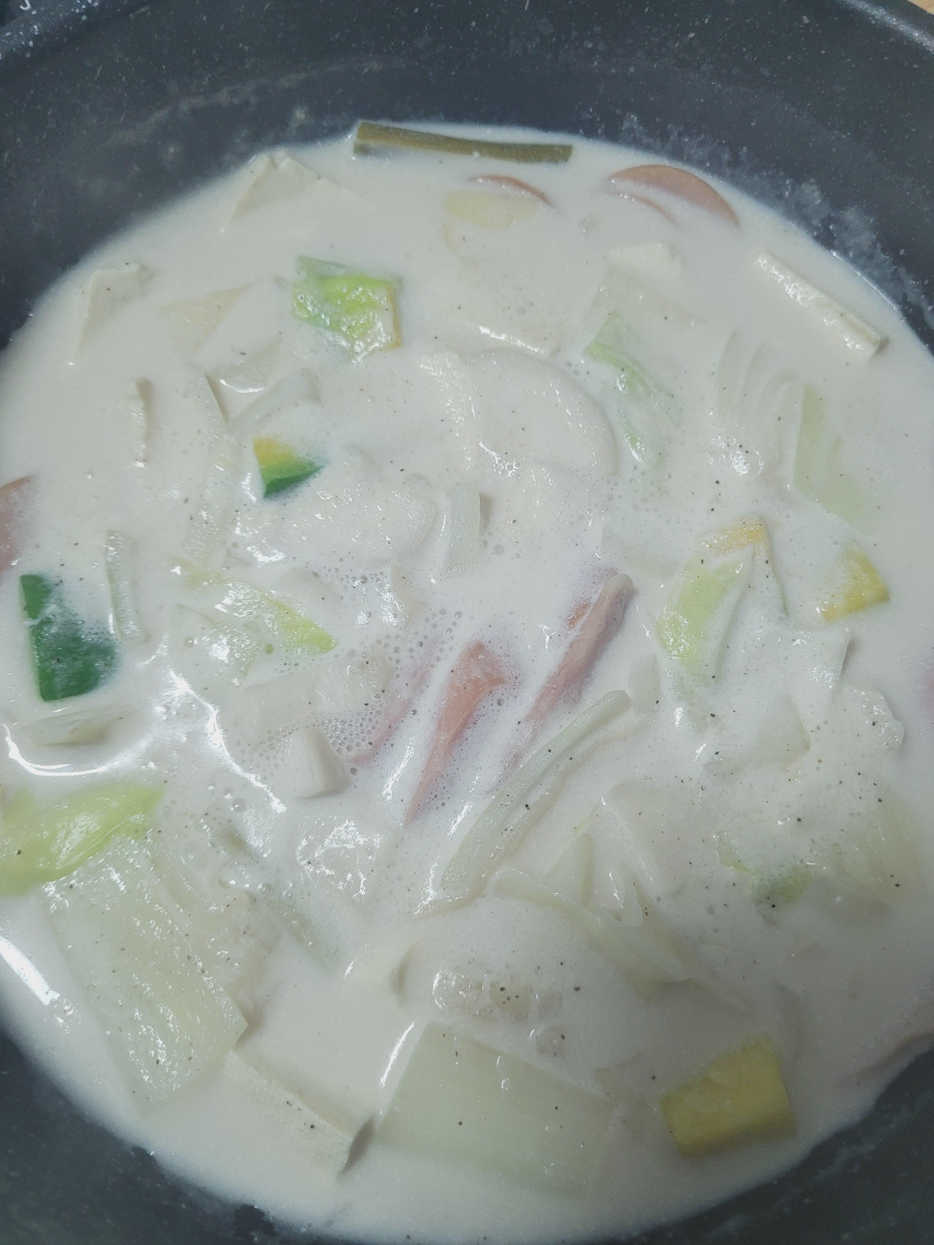 자칫 느끼할 수 있는 부드러운 크림 베이스 국물에