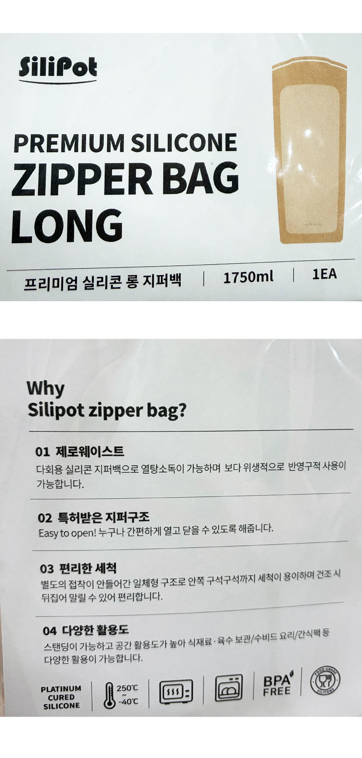 실리팟 롱지퍼백은 면부터 곡물, 길이가 긴 식재료까지 깔끔하게 보관할 수 있는 프리미엄 실리콘 지퍼백이에요. FDA·LFGB·REACH 테스트를 통과한 플래티넘 등급 실리콘으로 제작되어 안전하게 사용할 수 있으며, 냉장고 도어 포켓에도 딱 맞는 슬림한 사이즈로 공간 활용도가 높아요. 일회용 대신 재사용이 가능한 실리콘 소재로 친환경적인 사용이 가능한 실리팟을 쿠캣신공에서 50% 할인가에 만나보세요!