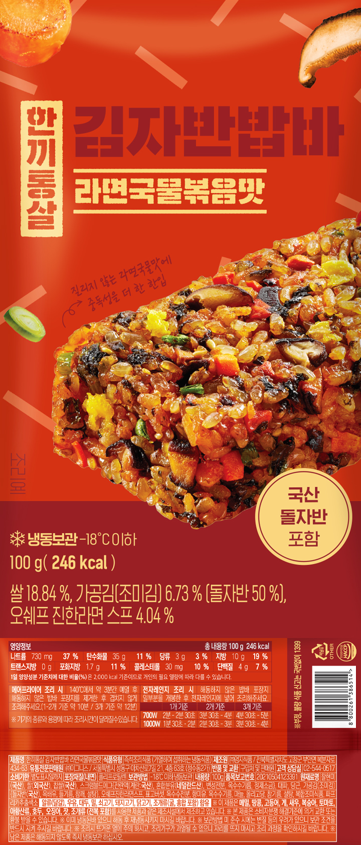 해동하지 않은 밥바 포장지 일부분을 개봉 후 전자레인지에 넣어 조리해 주세요.