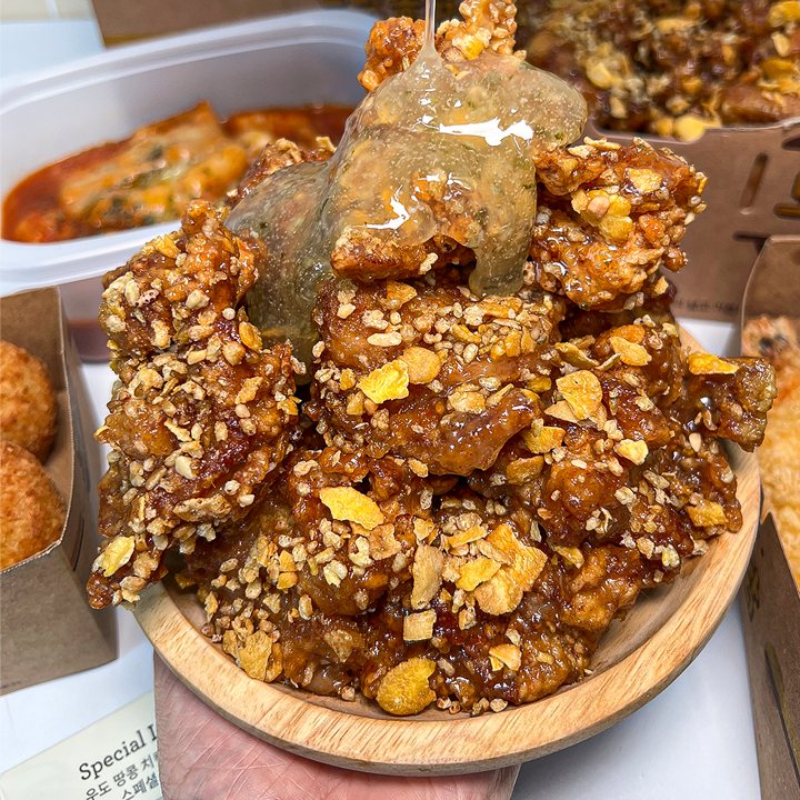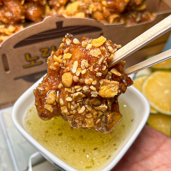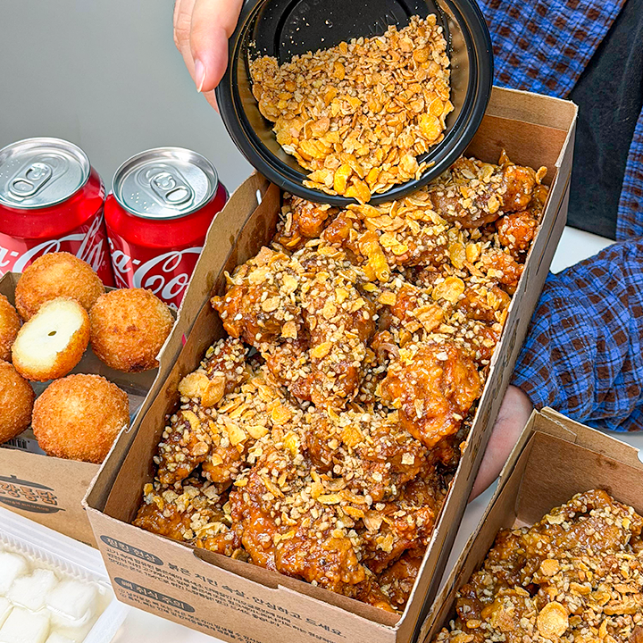 노랑통닭의 바삭한 치킨에 제주 우도의 고소한 땅콩 풍미를 더해 달콤하고 고소한 신상이 나왔어요. 여기에 상큼한 청귤 베이스 소스를 곁들여 느끼함 없이 균형 잡힌 맛을 즐길 수 있어요. 치킨 위에는 바삭한 타타리 메밀과 옥수수 시리얼 토핑을 아낌없이 뿌려 한층 더 고소하고 풍부한 식감을 느낄 수 있답니다. 제주 재료의 매력을 담은 노랑통닭 신상을 쿠캣신공에서 40% 할인된 가격으로 만나보세요!