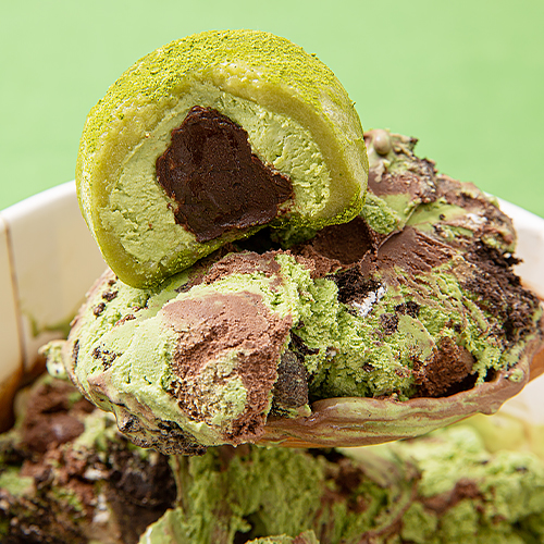 아이스크림 위에 초코쏙녹차 찹쌀떡을 잘라 토핑으로 얹어 드셔보세요. 입에서 녹는 달달함이 환상적이랍니다.