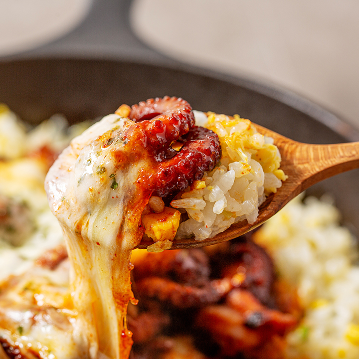 쭈꾸미 양념에 밥을 볶아 김가루, 치즈로