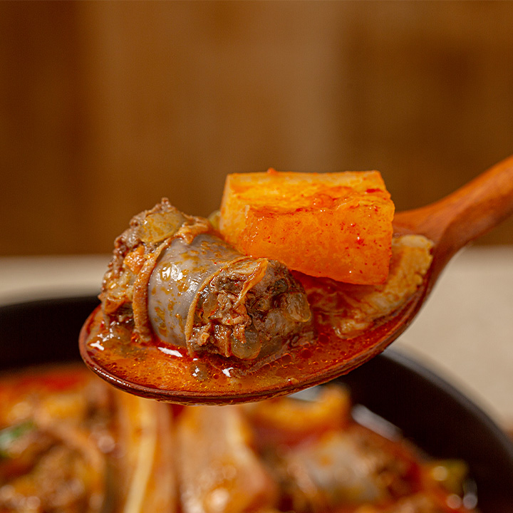 조리 전 제품을 냉장해동 또는 유수해동 후 냄비에 해동된 육수를 넣고 5~7분 끓여주세요. 별도 포장된 토종 순대를 넣고 추가로 약 3분 정도 더 끓여주세요.