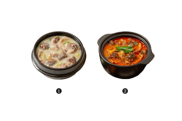 ① 고기순댓국 : 구수한 국물에 속이 꽉 찬 토종 순대, 쫄깃한 머릿고기를 푸짐하게 담아 고기 마니아분들에게 추천드려요.