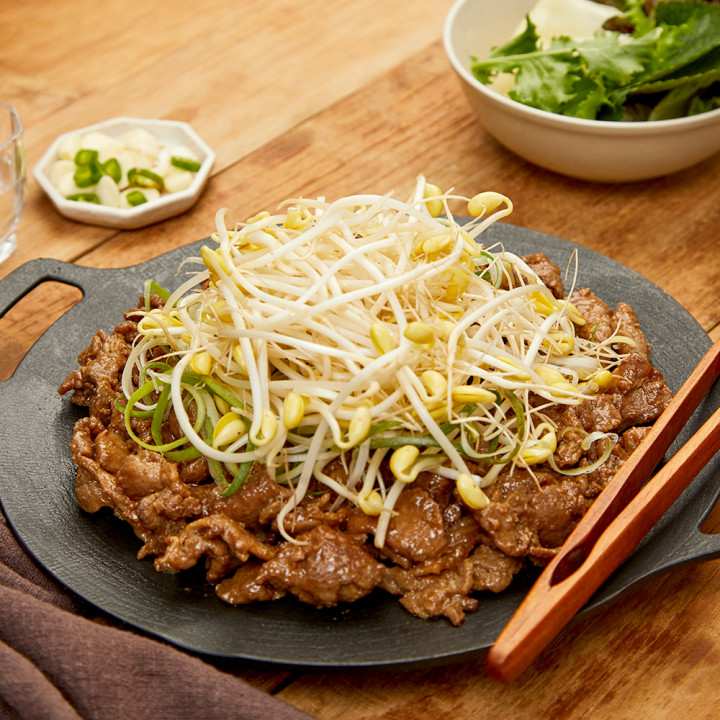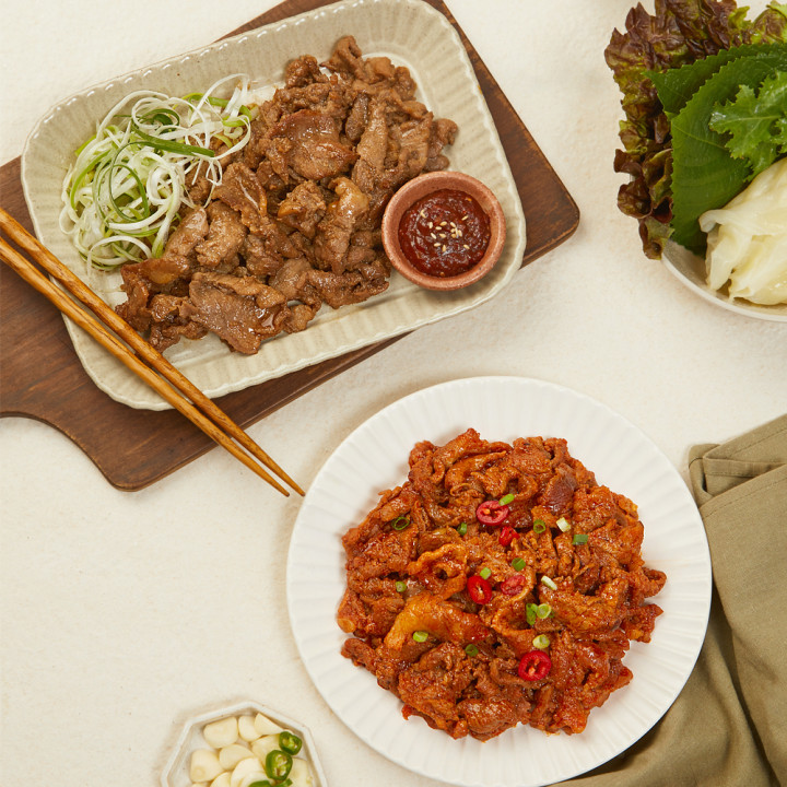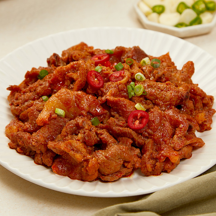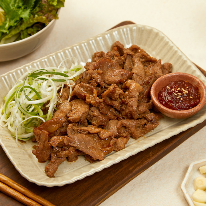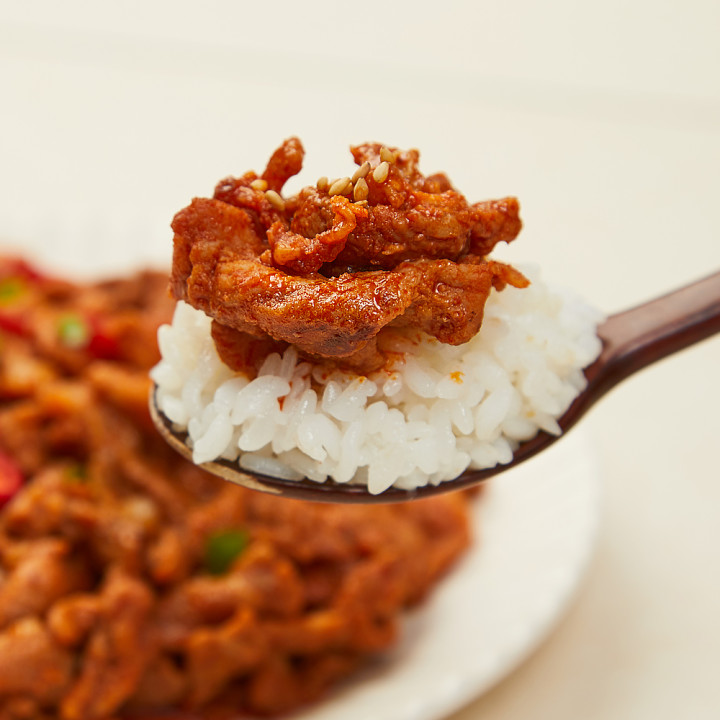 제육볶음에서 가장 중요한 양념이죠, 감칠맛 가득한 단짠 양념으로 입맛 없을 때 이거 하나면 밥 한 공기 뚝딱이에요. 직화 오븐에 구워 직화 향은 물론 촉촉한 육즙도 듬뿍 담겼어요.