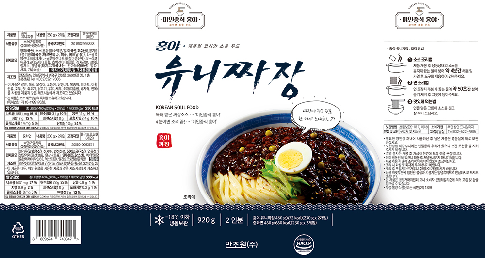 냄비 조리 - 유니짜장 / 고기짬뽕 냉동상태의 소스를 봉지째 끓는 물에 넣어 해동 및 가열해 주세요(짜장 4분, 짬뽕 7분). 냉동상태의 면을 개봉해 끓는 물에 넣고 1분 조리하세요. 물기를 제거 후 그릇에 담아, 소스를 붓고 잘 저어드세요.