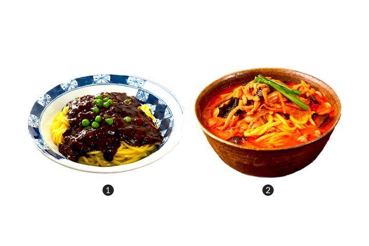① 유니짜장 :느끼함 없이 깔끔하고 달짝지근한 짜장 ② 고기짬뽕 :직화 돼지고기로 낸 불맛의 얼큰한 국물