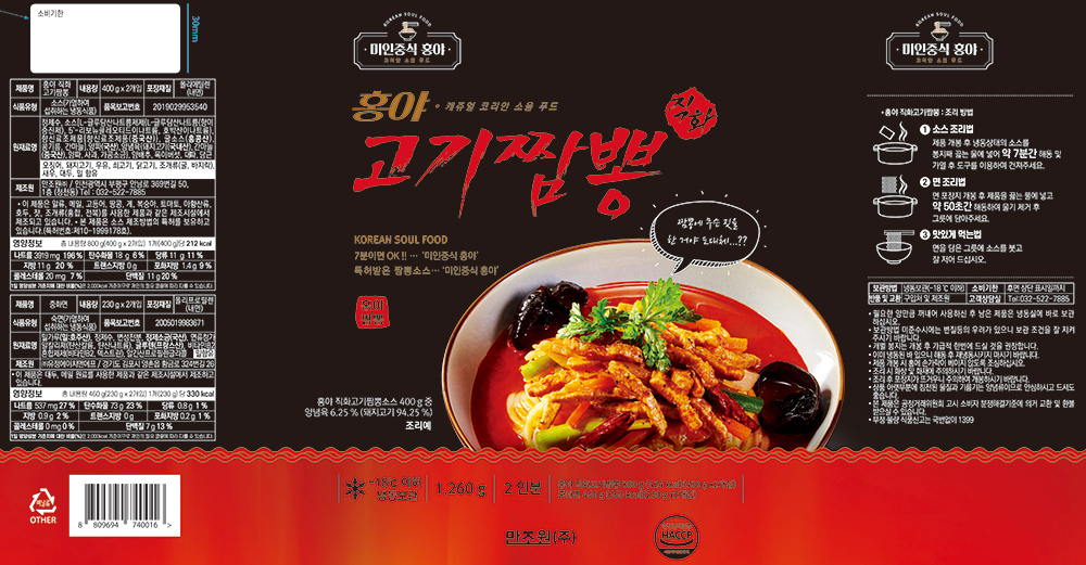 홍야 직화고기 백짬뽕 1,260g (2개입)