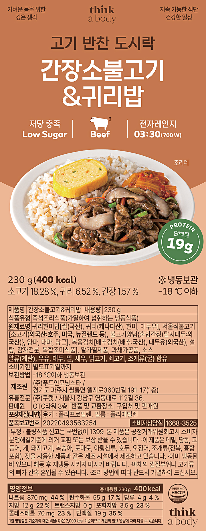 ① 간장소불고기&귀리밥 (400kcal / 저당)