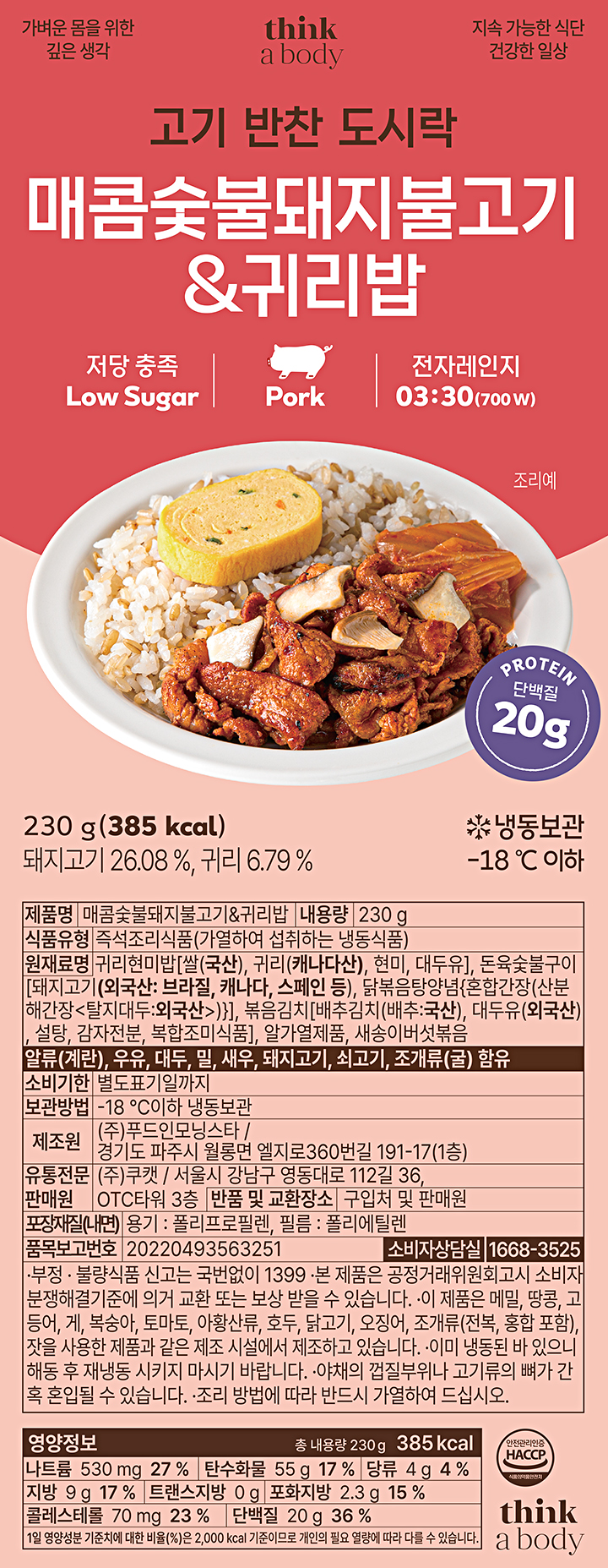 ⑤ 매콤숯불돼지불고기&귀리밥 (385kcal / 저당)