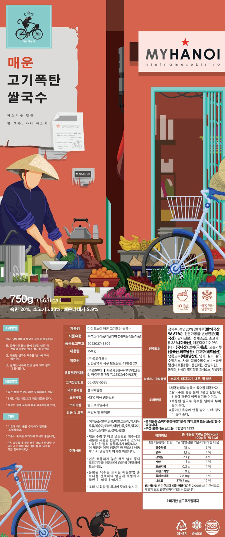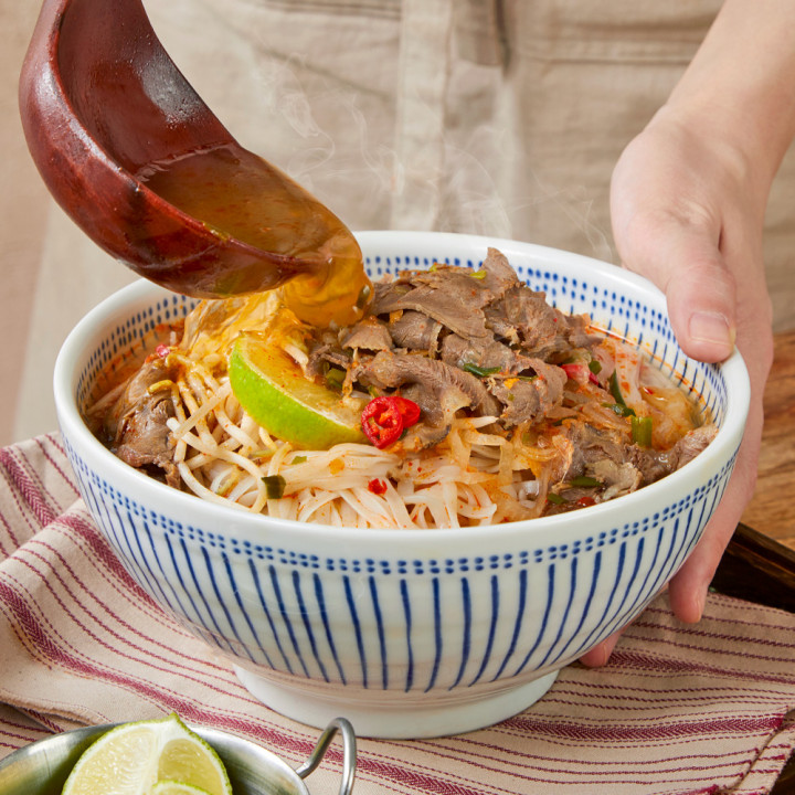 가로수길 쌀국수 맛집 마이하노이의 시그니처를 그대로 담았어요. 푸짐한 고기는 두 번 삶아내 더욱 부드럽고 깊은 식감을 완성했어요. 육수는 오직 호주산 우사골만 사용해 진하고 깔끔한 맛을 냈답니다. 하노이 현지 셰프와 공동 개발한 레시피로 현지의 맛을 살린 쌀국수를 만나보세요.