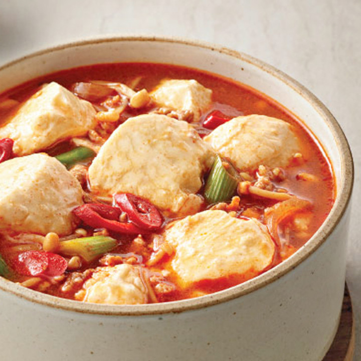 얼큰한 국물과 부드러운 식감의 순두부로, 다른 반찬은 필요 없는 찌개를 준비했어요. 국내산 돼지고기와 팽이버섯을 넣어 더욱 든든하게 즐길 수 있죠.