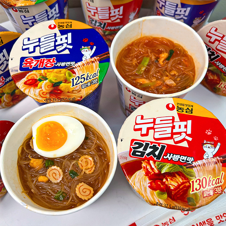 컵라면이 당기는데 칼로리가 걱정된다면? 이 누들핏에 주목! 육개장 사발면, 김치 사발면 2가지 맛을 그대로 담아 얼큰한 국물까지 다 먹어도 125~130kcal 밖에 되지 않아요. 가볍고 맛있는 누들핏을 할인된 가격으로 즐겨보세요.