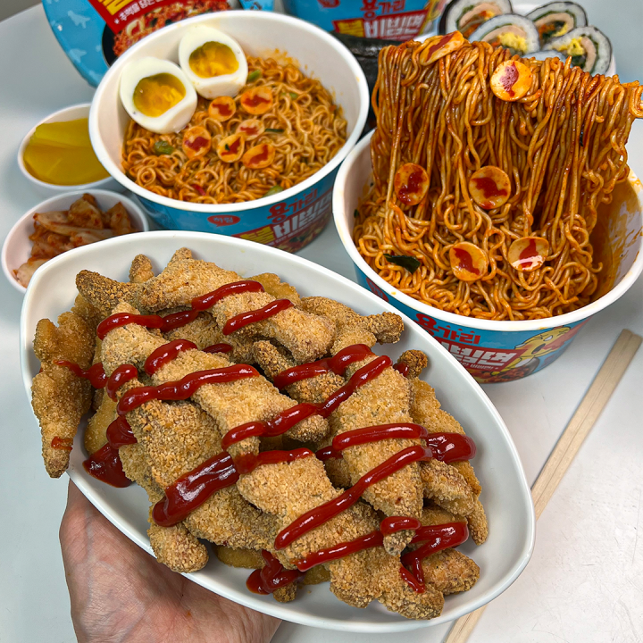 택배 발송 상품 ✅ 상품명 : 쿠캣신공 X 하림 용가리 불 비빔면 2개 세트⚠️ 한정 수량으로 조기 소진 시 품절될 수 있습니다.