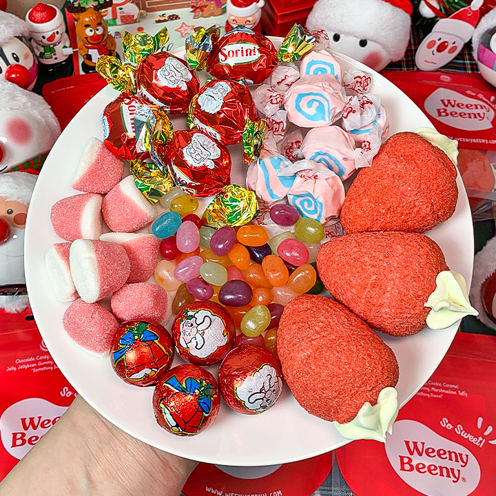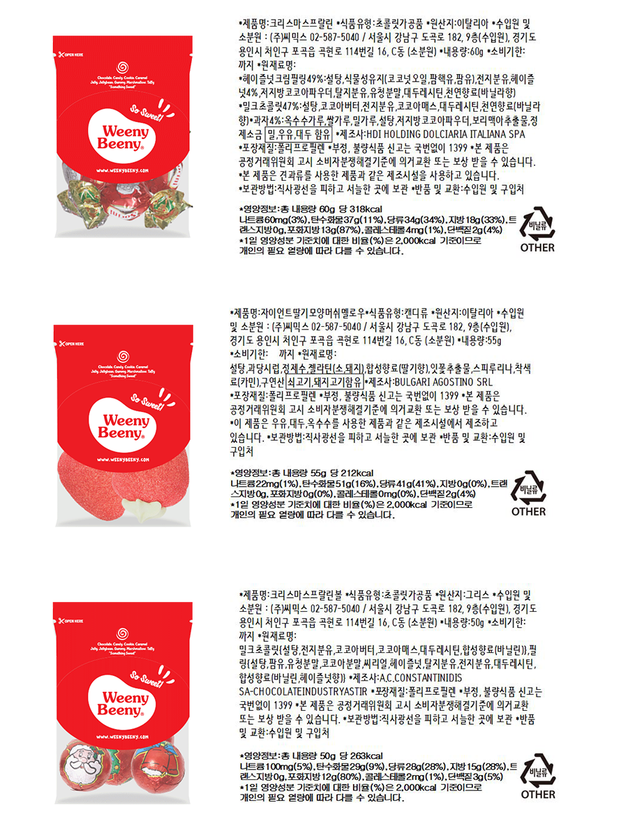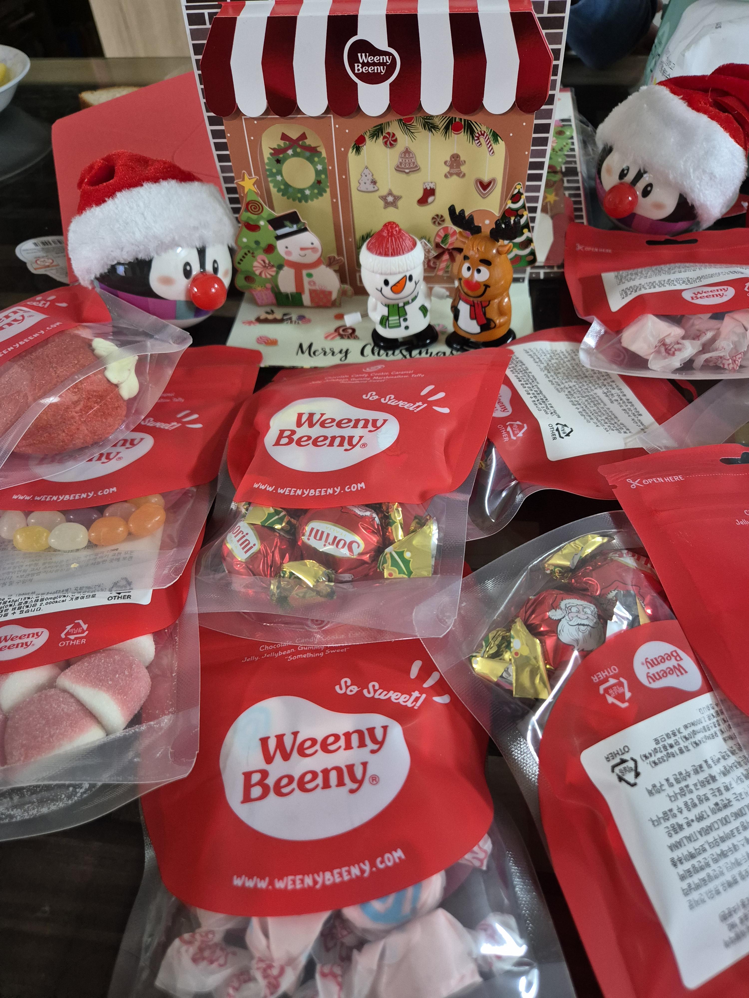 ✅ 구성 : 크리스마스프랄린초콜릿 60g + 볼프랄린초콜릿 50g + 딸기향키세스구미 55g + 솜사탕향타피 50g + 36플레이버믹스젤리빈 50g + 자이언트딸기모양머쉬멜로우 50g + 크리스마스 장난감(랜덤) 1개 + 크리스마스 LED 오너먼트(랜덤) 1개 + 크리스마스 팝업카드 1개