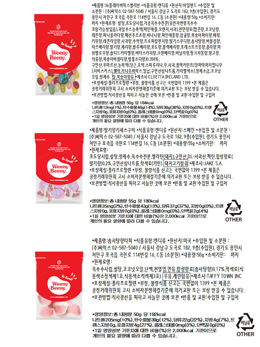 마시멜로, 초콜릿, 젤리 등