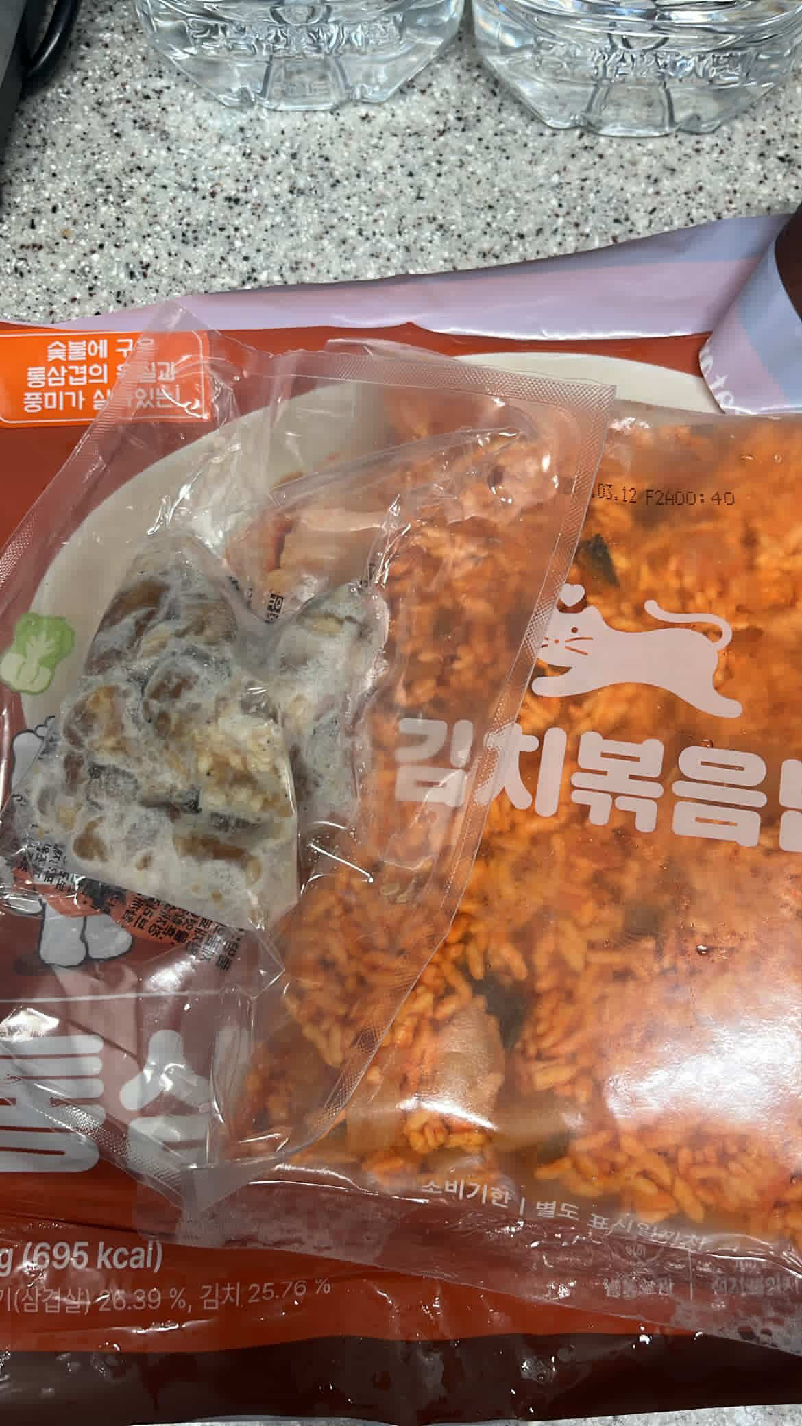 전자레인지 냉동상태의 볶음밥을 전자레인지용 용기에 담아 랩을 씌운 후 전자레인지 조리해 주세요. - 통삼겹 : 700W 6분